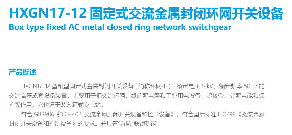 HXGN17-12固定式交流金屬封閉環(huán)網(wǎng)開關(guān)設(shè)備